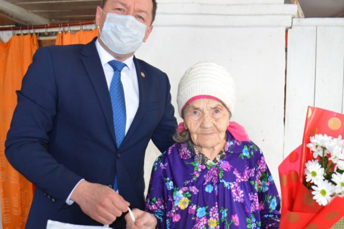 Секретарь Агрызского местного отделения партии «Единая Россия» Азат Валеев поздравил труженицу тыла в Иж-Бобье Файрузу Ахмадишину с 90-летием.
