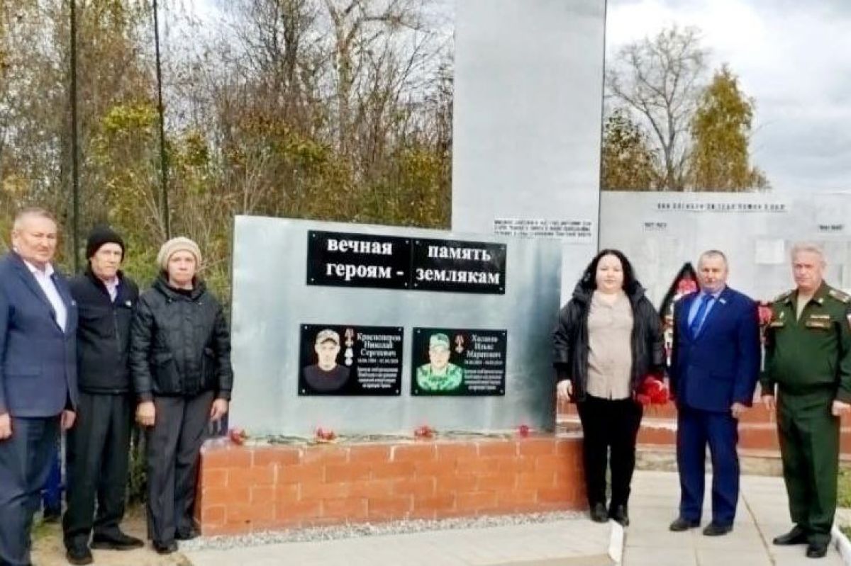 В селе на площадке у памятника ветеранам Великой Отечественной войны установили мемориальные доски Николаю Красноперову и Ильясу Хасанову – местным жителям, героически погибшим при выполнении боевых задач в ходе специальной военной операции.